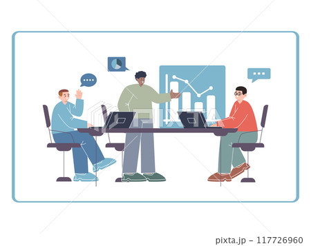 discussion together three man working together men team-mate teamwork discuss brainstorming graph chart presentation explaining future plan