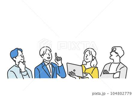 ブレーンストーミングでアイデアを考えるビジネスパーソンのイラスト素材
