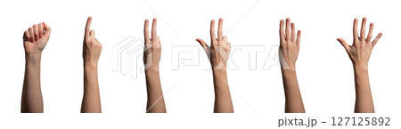 Hand with fingers raised, showing the numbers zero through five in a counting gesture. learning,