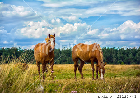 Two horses on the meadow
