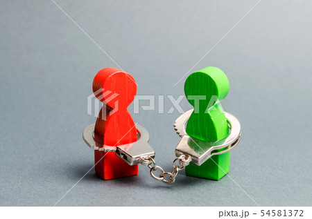 Two people are handcuffed to each other