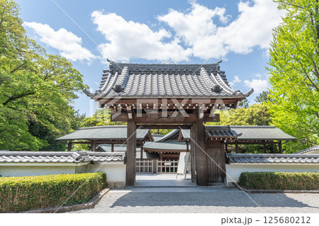 長野県松本市 松本城二の丸御殿跡入口と青空