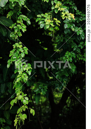 自然 観察 ヒメモダマ、若い細いつるが風に揺れます。このつるが順調に育てば腕の太さほどになります