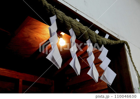 古い酒蔵の入口にあるしめ縄としめ飾り(紙垂)