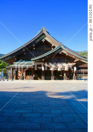 島根県出雲市 出雲大社の拝殿 晴れた日に横からの撮影風景