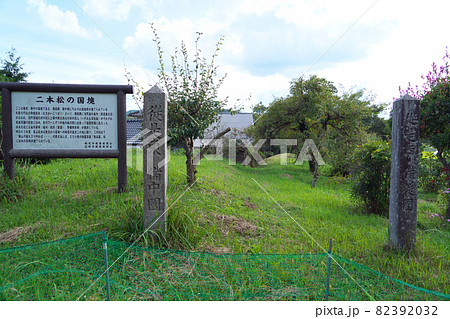 備中国と備後国の二本松の国境に建つ備中国と備後国の国境の碑 岡山県新見市・広島県庄原市
