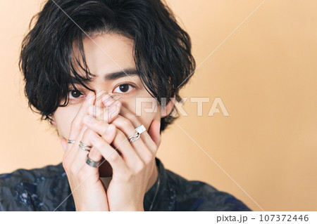 アクセサリーをつけた若い日本人男性のポートレート 美容 スキンケア メンズコスメ
