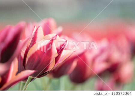 〈島根県〉鮮やかな伯太の赤白二色チューリップの花