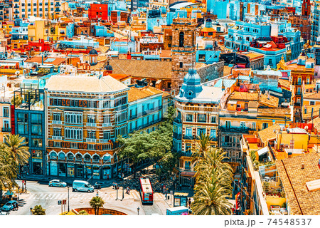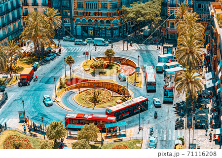 View above on square, Plaza of the Queen (Placa de la Reina) in