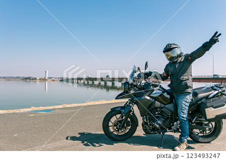 横浜をツーリングする笑顔の女性ライダー