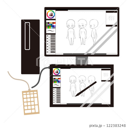 液タブと左手デバイスのイメージイラスト