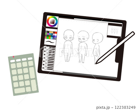 液タブと左手デバイスのアイソメトリックのイメージイラスト
