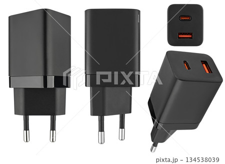 Power adapter for tablet phone, on white background in insulation