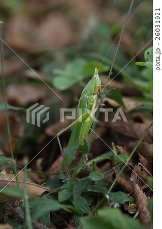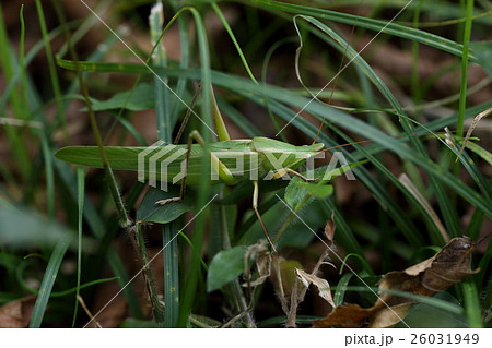 生き物 昆虫 クビキリギス、いきなり草を刈られ困っている?これから越冬して来年繁殖活動を行います