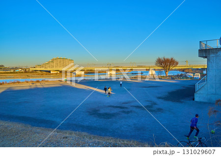 神奈川県川崎市多摩区登戸の稲田多摩川公園方面の眺望(五反田川放水路など)