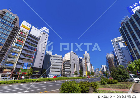 東京都品川区五反田。五反田駅東口側の国道1号線の交差点から高輪方面の景観