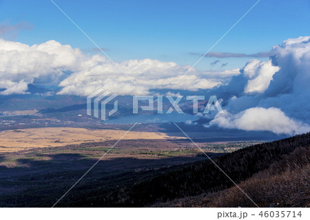 富士登山吉田ルートから望む山中湖 富士登山 夏山登山