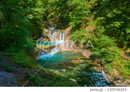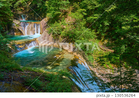 山梨県山梨市 西沢渓谷の七ツ釜五段の滝の段瀑部分を見る