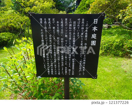 旧吉田茂邸の日本庭園の説明看板(神奈川県大磯町)