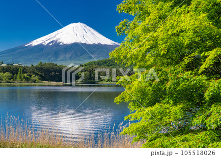 《山梨県》初夏の富士山・新緑の河口湖湖畔