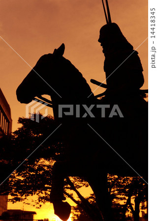 6月滋賀 彦根駅前の井伊直政像・夕景
