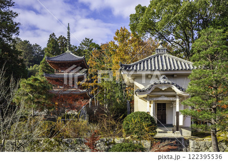 宝福寺の重要文化財三重塔と晩秋の青空 岡山県総社市