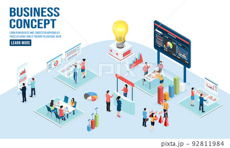 3D isometric Business activities concept with office workers process a work scheduling, planning. Modern trendy concepts for web sites and mobile web sites. Vector illustration eps10