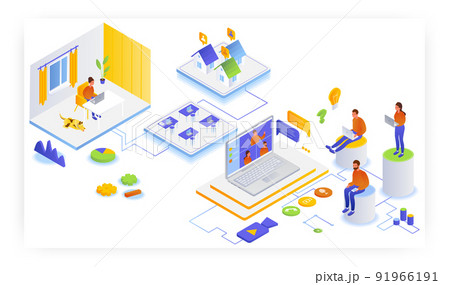 isometric online learning concept. video tutorial