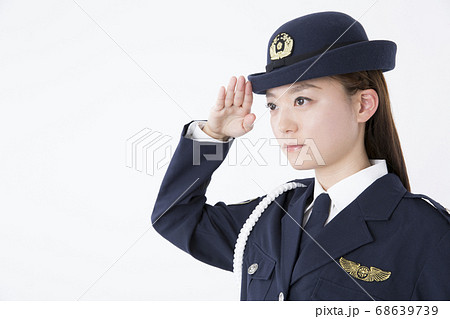敬礼をする女性警察官