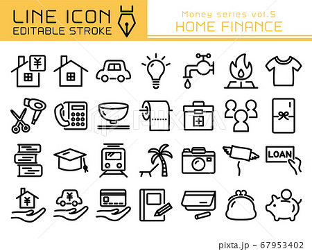 生活費のアイコンセット _ ( シンプル ベクター 線画 背景透過 モノクロ )