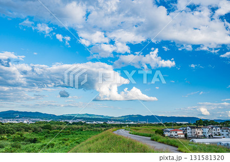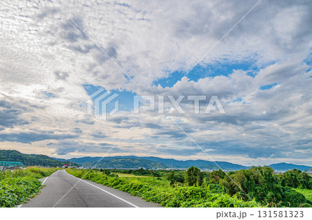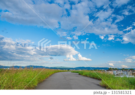 木津川堤防上の道 京奈和自転車道 京都府八幡市