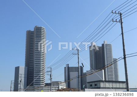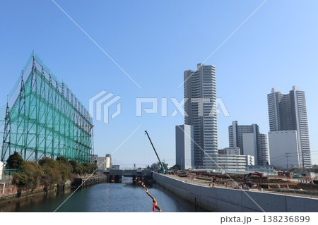 日本の横浜都市景観 東神奈川駅などを望む