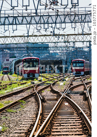 京浜急行 神奈川新町車両基地の車両 車庫の風景