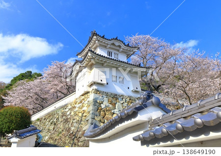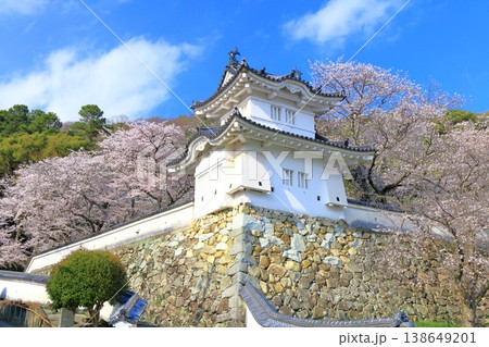 【兵庫県】満開の桜と龍野城の埋門と龍野市街