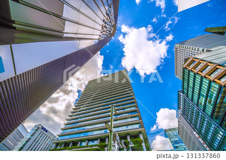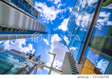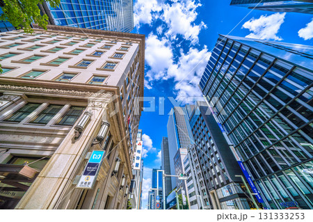 高層ビルを見上げるオフィス街の風景(東京駅周辺)