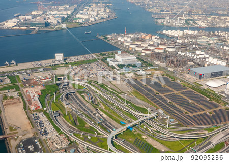 横浜港上空より浮島と東京湾を望む・京浜川崎臨海部工場地帯