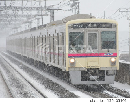 雪の中を走る京王7000系7727F