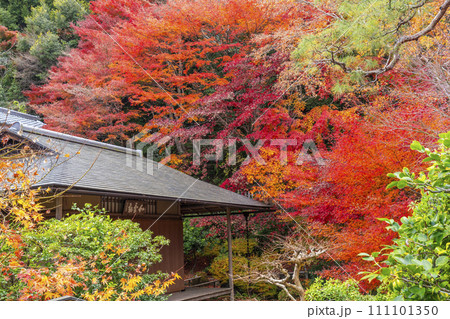 秋の京都 二尊院 色鮮やかな紅葉と御園亭