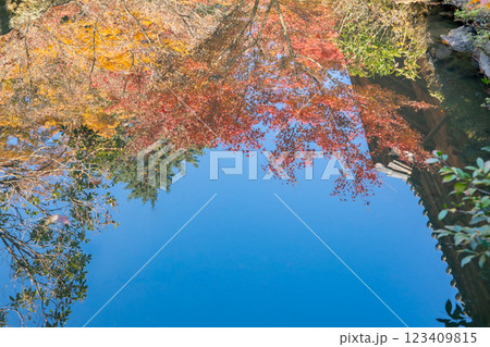 京都市左京区岩倉上蔵町 岩倉山 実相院門跡(岩倉御殿) 池泉回遊式庭園 水面に映る紅葉