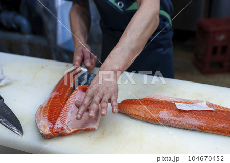 鮭をおろす 京都中央市場/京都