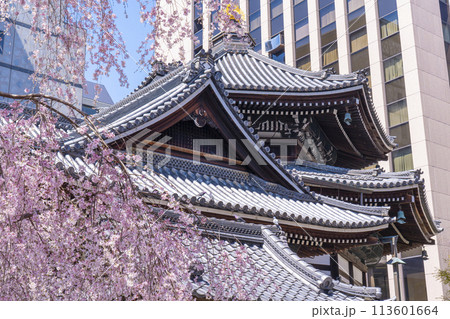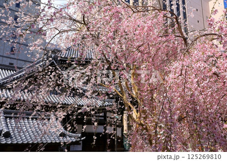 京都 紫雲山頂法寺 六角堂 美しい満開の枝垂れ桜(京都市中京区)