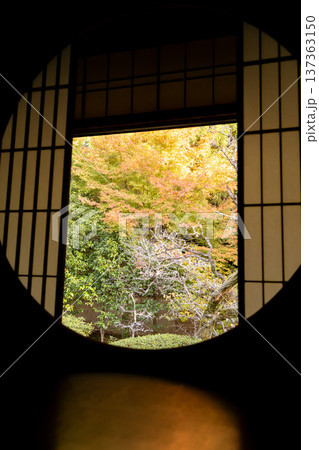 京都 東山泉涌寺別院 雲龍院(瑠璃山) 境内中庭の紅葉(月窓の間からの眺め)