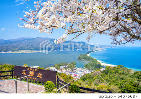 日本三景の天橋立 桜が満開の丹後半島天橋立