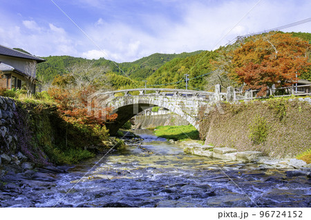 秋の色に染まる美しい秋月目鏡橋 (福岡県朝倉市)