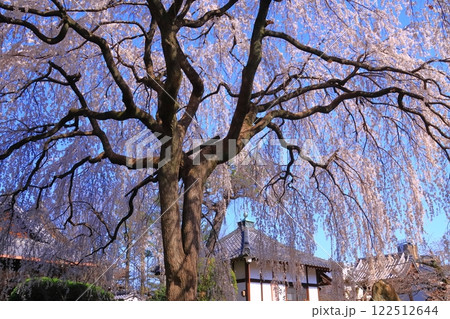 京都 上品蓮台寺 玄関前の満開の枝垂れ桜