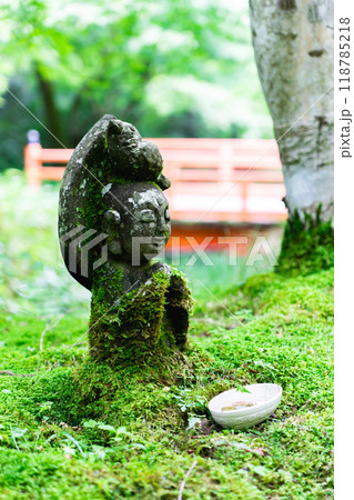 京都市左京区大原来迎院町 三千院(声明発祥の地) 有清園の苔と戯れるわらべ地蔵