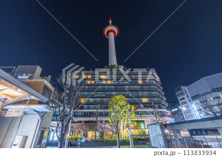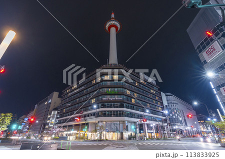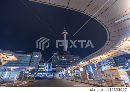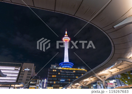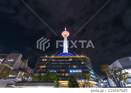 京都市下京区JR京都駅前の京都タワーを撮影したもの