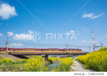 春爛漫の菜の花畑と京阪電車