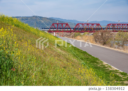 春の木津川風景 京阪電車鉄橋 京都府八幡市