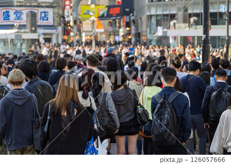 渋谷スクランブル交差点を横断する人たちの後ろ姿